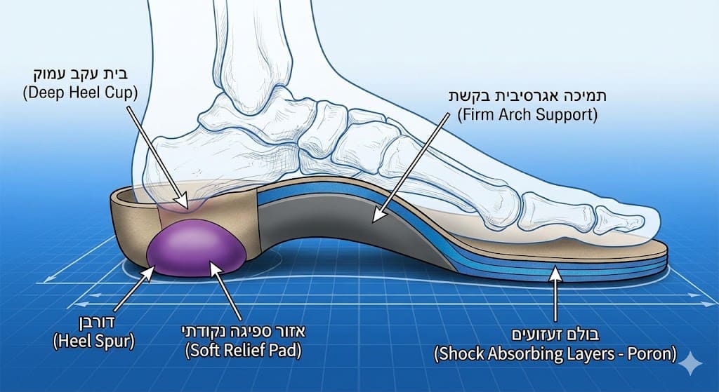 נעל אידיאלית לדורבן תכלול לרוב עקב יציב (Heel Counter) שאינו קורס,