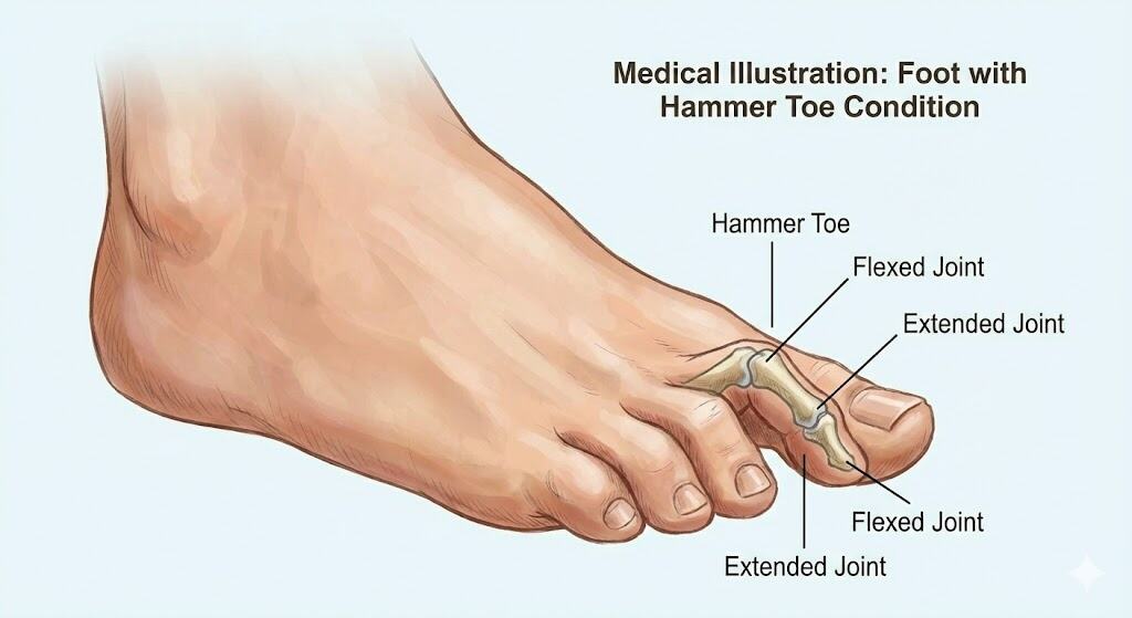תיאור הבעיה: "אצבע פטיש" (Hammer Toe) הוא עיוות (Deformity) במנח אצבעות כף הרגל הקטנות (לרוב האצבע השנייה, אך ייתכן גם ב-3 וב-4). ההגדרה הקלינית המדויקת היא כיווץ (Flexion) של המפרק הבין-גלילי המקורב (PIPJ), המלווה לרוב ביישור יתר (Hyperextension) של המפרק בבסיס האצבע (MTPJ) ולעיתים יישור של המפרק המרוחק (DIPJ).