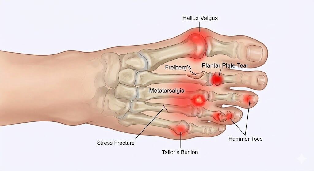 כף הרגל הקדמית (Forefoot): המדריך המלא לכאבים, עומסים ופתולוגיות