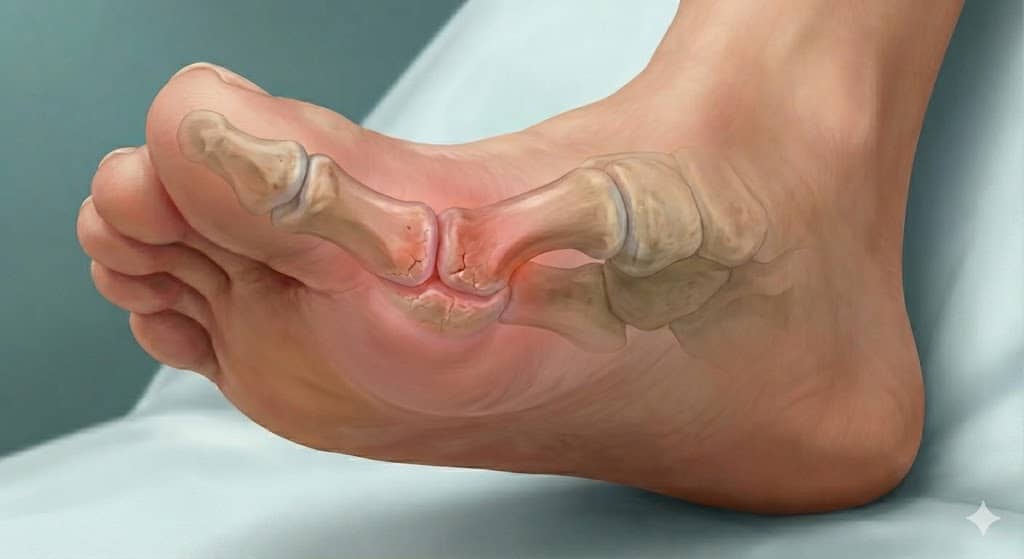 2. מיקרו-טראומה: מפרק ה-1st MTPJ נושא עומס עצום בכל צעד (כמחצית ממשקל הגוף בשלב ה-Push-off). עומס דחיסה ושחיקה מתמיד זה יוצר נזק מיקרוסקופי לרקמות, המעודד את שקיעת הגבישים ("Nucleation sites") ושחרורם לחלל המפרק בעת חבלה.